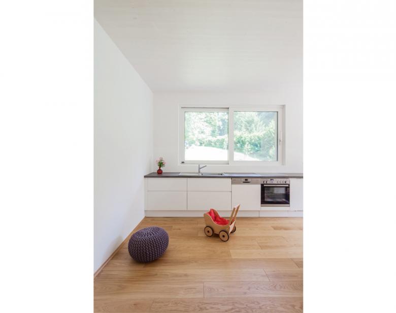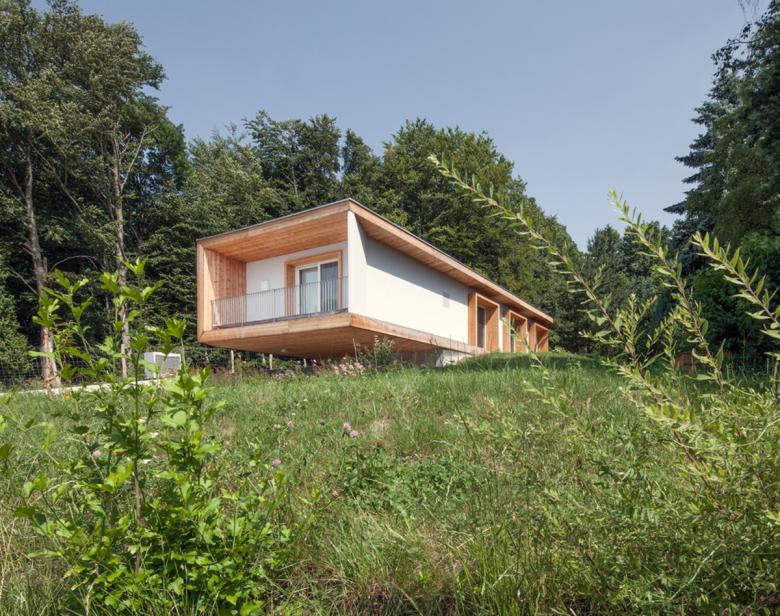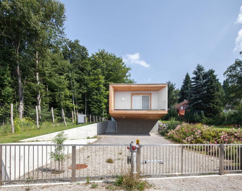 Die Auftraggeber erbten ein Waldgrundstück mit einem ziemlich verfallenen Häuschen darauf. Sie waren auf der Suche nach einer angemessenen und leistbaren Lösung, um ein generationengerechtes Gebäude zu errichten. Es sollte sich an unterschiedliche Lebensbedingungen anpassen können und individuellen Vorstellungen von einer nachhaltigen Lebensweise gerecht werden. Das tragende Element ist Holz von lokalen Firmen und Decken, Wände sowie die Tragstruktur bedienen sich des Naturstoffes. Im auskragenden Gebäudeteil bietet ein vorgelagerter Balkon einen weiten Ausblick auf den Wienerwald. Das Haus K stellt eine besonders kosteneffiziente und nachhaltige Lösung für ein Einfamilienhaus dar.