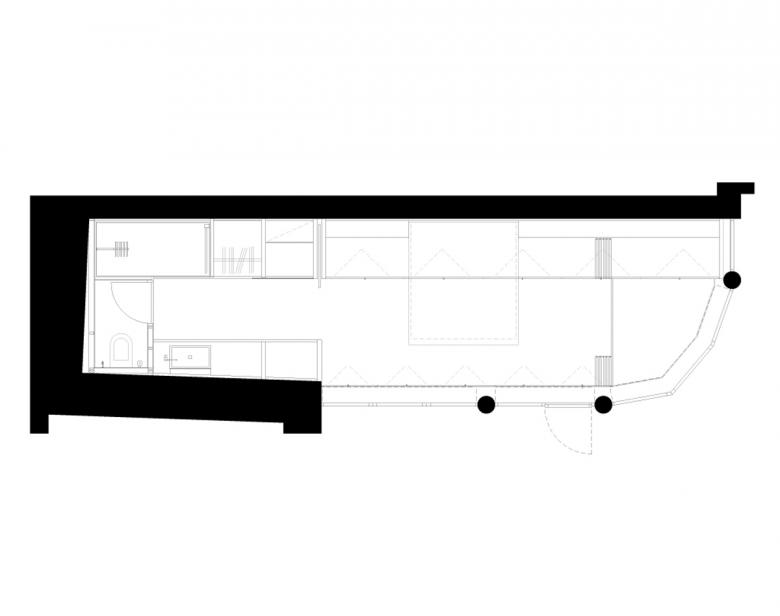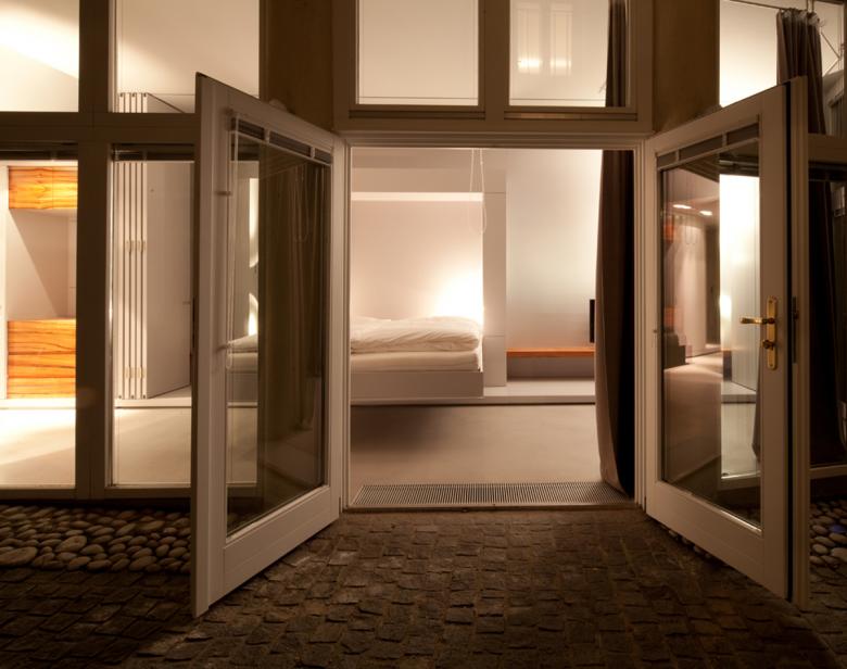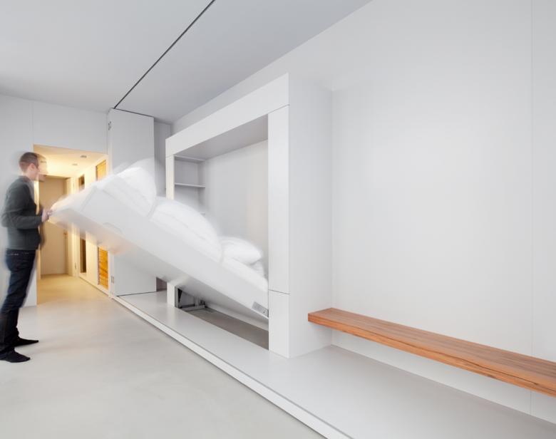In der Wiener Innenstadt schuf sich ein Ehepaar einen wandelbaren Raum. Das kompakte, hochwertig ausgestattete Loft sieht zwei Zustände vor. Im geschlossenen Zustand erkennt man nur weiße Oberflächen, der Ort lässt so auf nichts schließen. Im offenen Zustand verwandelt sich der Raum in einen privaten und komfortablen Schlafbereich mit extra großem Bett und separatem Loungebereich, die Nebenräume bestehen aus Schrankräumen und Badezimmer. Sämtliche Funktionen sind in einem umlaufenden Schranksystem verbaut.