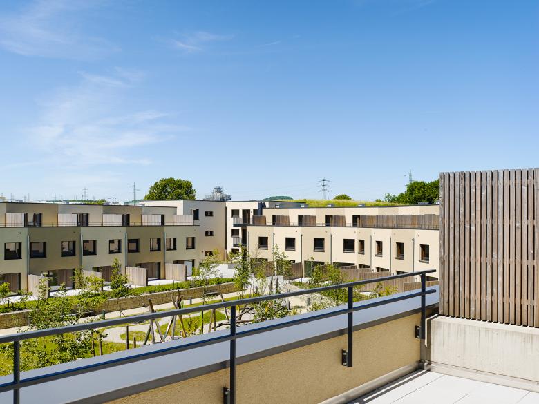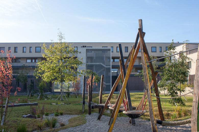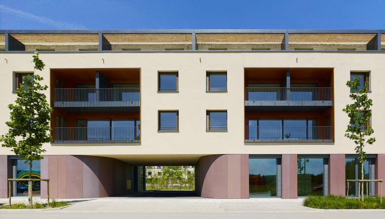 Construction of a housing area with 28 terraced houses, 36 flats, day care centre and nursery on the ground floor as well as underground parking with 125 places