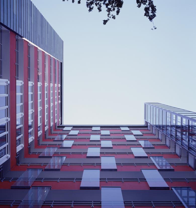 Das 13-geschossige Laubenganghochhaus am Wohlerspark in Hamburg aus dem Jahr 1960 mit 77 Wohneinheiten wurde nach gewonnenem Wettbewerb einer umfassenden Transformation unterzogen.