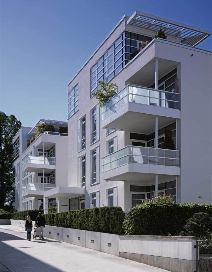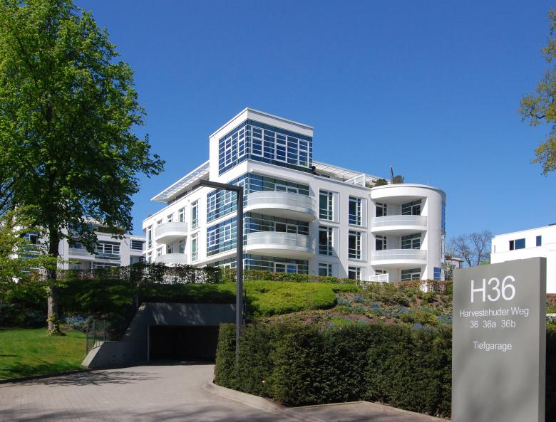 Das Villenensemble erstreckt sich zwischen Sophienterrasse, Alsterkamp und Havestehuder Weg und prägt in kristalliner Klarheit diesen Ort im Alstervorland. Für die Architektur der fünf weißen Villen wurde ein klar durchstrukturiertes, harmonisches Proportionssystem entwickelt und so auf innovative Weise eigenständige, authentische Bauwerke geschaffen. Der Entwurf versteht sich als zukunftsweisende Umsetzung des urbanen Lebensgefühls an der Außenalster. Weißer Putz mit Perlmuttbeimischung, großzügige, bodentiefe Glasflächen und durch Staffelung erzeugte Terrassen betonen die Eleganz der Architektur. Die Gebäude gruppieren sich in komplexer Topographie mit einem Niveausprung von 9,50m um den Fußweg Sophienterrasse zwischen Alsterkamp und Harvestehuder Weg. Dieser Fußweg ist im Rahmen der Neuplanung schwellenfrei gestaltet und wird auf seiner Nordseite von den zwei Villen am Alsterkamp 43 gefasst. Auf der Südseite begleiten die drei Villen H 36 den Fußweg und bilden den zentralen Platz des Ensembles, mit hoher Aufenthaltsqualität für die Anwohner. Die modernen Wohnungen mit 3 - 4 m hohen Räumen sind alternsgerecht barrierefrei erschlossen und geprägt von repräsentativer Großzügigkeit, die von vielfältigen Blickbeziehungen zur Außenalster und dem vorgelagerten Alsterpark unterstrichen wird. Ausgestattet mit zeitgenössischer Technik, einem hohem Energiestandard und dem demographiesicherem Mehrgenerationen-Konzept verbindet das Projekt diverse komplexe Ansprüche miteinander. Durch optionale vertikale und horizontale Zusammenlegbarkeit der Wohneinheiten bietet das Konzept flexible Nutzungsmöglichkeiten. Der großzügige 390qm große Wellness- und Fitnessbereich und die zweigeschossige Tiefgarage mit 150 Stellplätzen runden das anspruchsvolle Konzept ab.