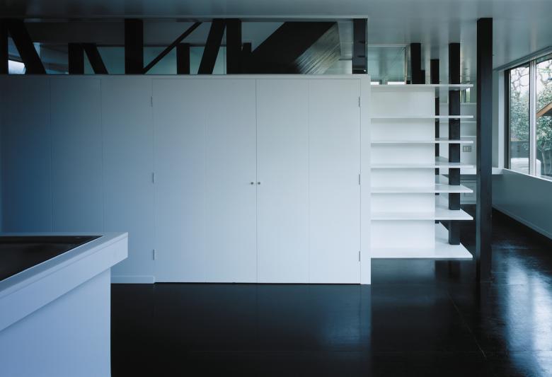 In addition, the black and white paint has a strong gloss. As a result, when people enter the annex from the main house, they feel a sense of continuity but are also conscious of a slightly different atmosphere.