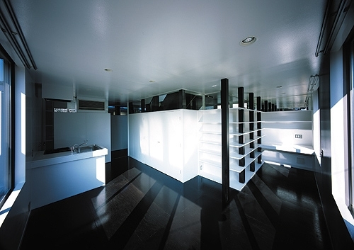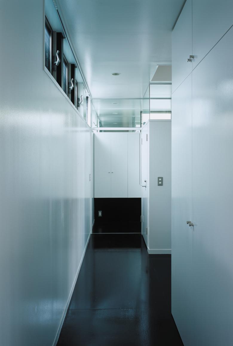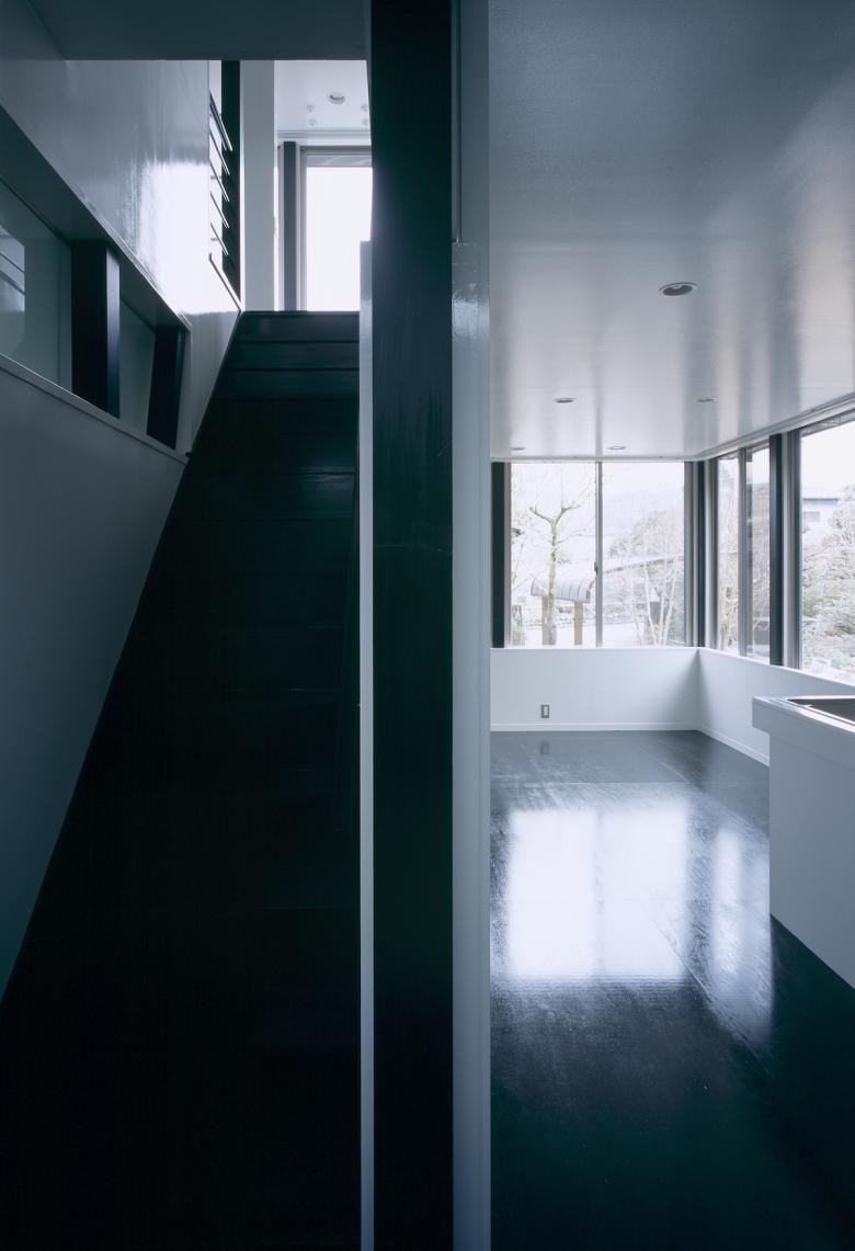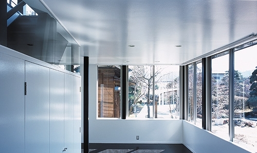 The glossy floors, walls and ceilings reflect light and scenery, and these reflected images are mirrored again on each other. On sunny days very complicated gradations appear on the ceiling, as if clouds were floating overhead. When that happens, the interior connects to the exterior and becomes a part of the scenery.
