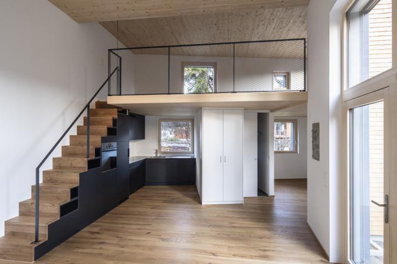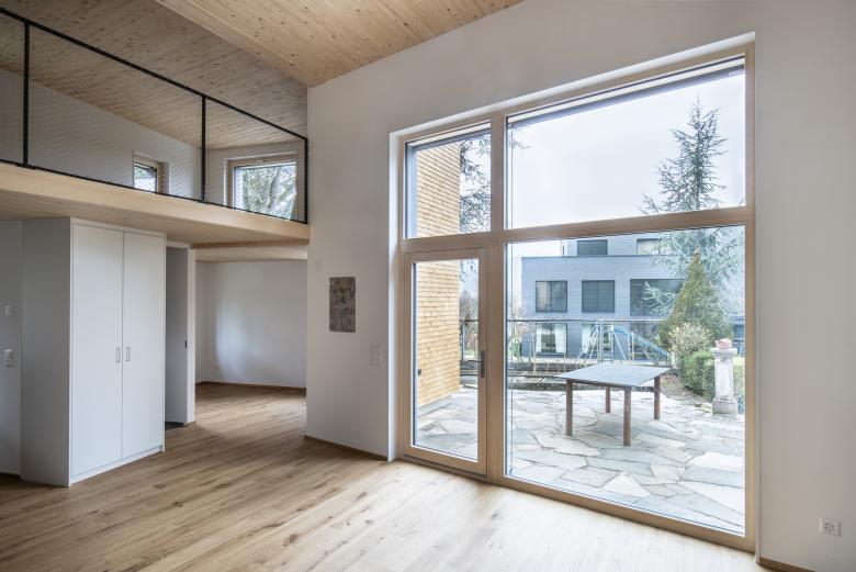 Das historische Wohnhaus von 1878 (ehemals mit Stallungen), beherbergt zwei Geschosswohnungen und ist umgeben von einem parkähnlichen Umgebungsraum. Mit einem pavillonartigen Neubau wurde zusätzlicher Wohnraum geschaffen. Das darüberliegende Flachdach bietet der bestehenden Obergeschosswohnung grosszügige Aussenflächen.
