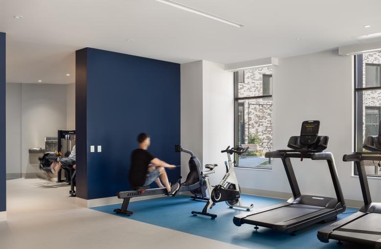 Vital Brookdale provides amenities that promote wellness and create safe spaces for its residents and the larger community. Tenants have access to a terrace, landscaped courtyards, a dog run, play area, and passive recreation and seating areas. Additional amenities include a community room, game room, library/co-working space, fitness room, laundry room, and a bike storage room. The design of Vital Brookdale provides visual and physical connections between active and passive outdoor spaces, the interior common areas, and many of the units.