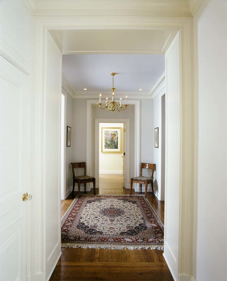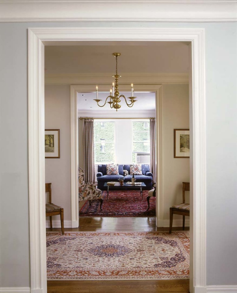 Updating this residence for the 21st century was a multi-layered process. The entire apartment was stripped down to its bare walls. Traditional details were documented for replacement. Doorways in the Central Hall were raised to align with the window headers for a stronger connection from room to room and allow daylight to pour deeper into the apartment. The interior millwork details were archivally recorded, removed, reinstalled, and improved upon. The apartment was updated with conveniences that reflect a modern lifestyle. All new power and data wiring were installed for new appliances, communication and architectural lighting.