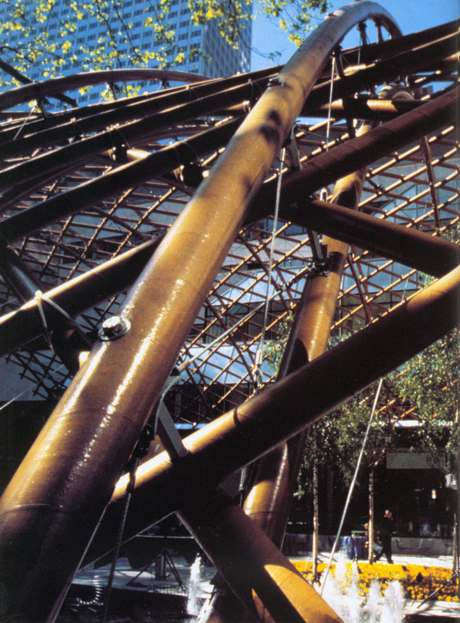As part of the Making Choices exhibition at the MoMA, the Paper Arch project departed from the previous architectural exhibits, which took place in the garden between 1940 and 1960. Instead of creating an experimental house, the focus of those earlier exhibits, an 87-foot-long, 30-feet-high experimental structure was designed to incorporate the entire Sculpture Garden. The paper arch is the longest paper structure ever to be built. During the course of the exhibition, shadow patterns created by the latticework structure dance across the garden and wrap around trees, flowers and sculptures.