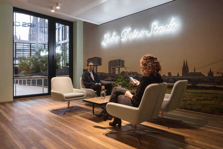 Dank der Kreativität der Architekten, Innenarchitekten und des Lichtplaners sowie der kontinuierlichen Mitwirkung des ambitionierten Auftraggebers wurde für HRS eine unverwechselbare, abwechslungsreiche Arbeitswelt geschaffen, die das weltweite Engagement des Unternehmens spiegelt. Mit seinen einladenden, offenen Teeküchen, Arenen und Lounges ist der Ort konsequent auf informelle Kommunikation ausgelegt. Das Umfeld trägt mit Sicherheit auch zur Rekrutierung neuer Mitarbeiter bei. Die dürften nicht lange auf sich warten lassen, denn HRS hat noch sehr viel vor.