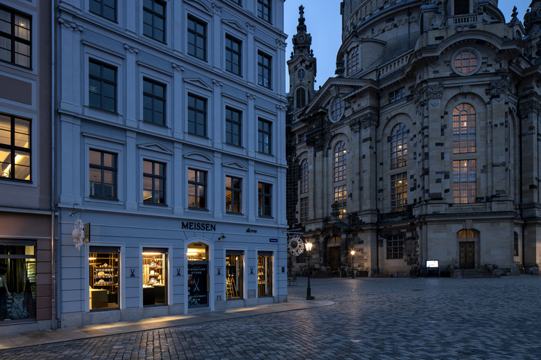 Wer die Frauenkirche besucht oder einfach nur durch die Dresdener Altstadt flaniert, kommt seit Ende vergangenen Jahres gar nicht umhin, auch einen Blick in den Meissen Signature Store zu werfen. Nahezu raumhohe Fenster in historischer Fassade locken unwiderstehlich in den mit warmen Licht erfüllten Innenraum.