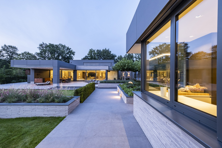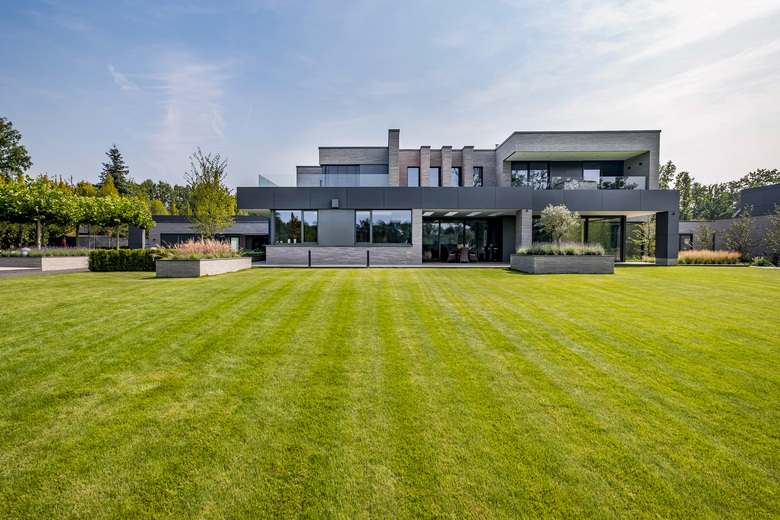 Im Kreis Borken im westlichen Münsterland ermöglichte sich ein privater Bauherr am Rand eines dicht mit Ein- und Zweifamilienhäusern bebauten Wohngebiets den Wunsch absoluter Privatheit. Auf einem weitläufigen Gelände entstand ein modernes luxuriöses Anwesen mit drei aus der Nachbarschaft nicht einsehbaren Gebäuden, einem künstlich angelegten See und einer anheimelnden Parklandschaft.