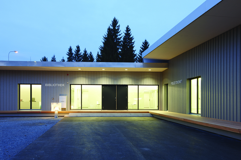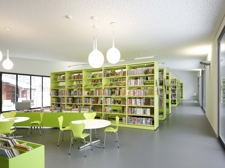 Nach dem Entwurf von Drexler Guinand Jauslin Architekten ist ein größerer Freizeitdienst und eine Bibliothek entstanden. Der bestehende Chramschopf fügt sich mit seinem neuen Vordach optimal ins Ensemble ein. Zwischen den drei öffentlichen Gebäuden spannt sich ein wohnlicher Platz auf. Die Bibliothek und der Freizeitdienst sind jeweils in einem Flügel des L-förmigen Neubaus untergebracht und werden durch den platzseitigen Eingangsbereich und die gemeinsam genutzten Räume verbunden. Das zentrale Anliegen, den Bezug zum Außenraum herzustellen, wird durch die allseitig bodenhohen Fenster unterstützt. Die eingeschossige Architektur erlaubt eine einfache Bauweise ohne Treppen, Aufzüge und aufwändige Fluchtwege. Das Projekt konnte in Holzbauweise umgesetzt werden.