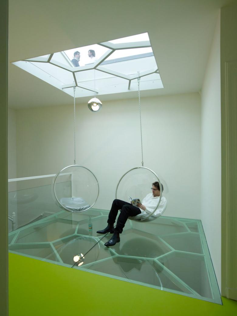 Das Zentrale Oberlicht wurde komplett durch einen begehbaren, transparenten Glasboden auf einer zeitgenössischen Tragstruktur ersetzt. Das Motiv der Tragstruktur ist aus dem 21. Jahrhundert, harmoniert jedoch mit dem zurückhaltenden Jugendstil des Baus.