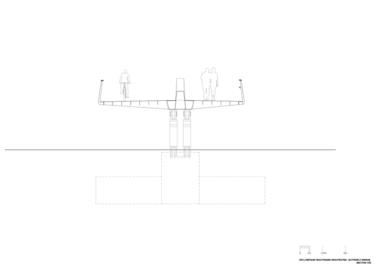 Par leurs simplicités, ils forment un contraste avec le caractère monumental des bâtiments. Les ponts qui sont destinées aux piétons et aux cyclistes offrent un maximum de transparence et de légèreté.