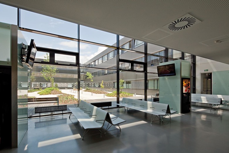 The large scale extension to the central hospital, which is the only one in a wide area around central Carinthia, is particularly successful in urban planning, medical, architectural and social terms. Alongside technical criteria it was ultimately the intelligent layout of the volumes that was decisive. In view of the enormous size of the program of spaces and the small-scale structure of the hospital surrounding we wanted to keep the design “flat and simple”. Using a new kind of orthogonal mesh structure that condenses around internal courtyards which decrease successively in size from north to south, we found a flexible and highly efficient model for organizing a wide variety of different volumes. For, in addition to the patients wards, out-patient facilities, surgery areas and rooms for the administration also had to be housed in a manageable way and connected to the old buildings on the hospital site and with a large supplies and disposals building – all together this resulted in gross floor area of no less than 128.000 m².