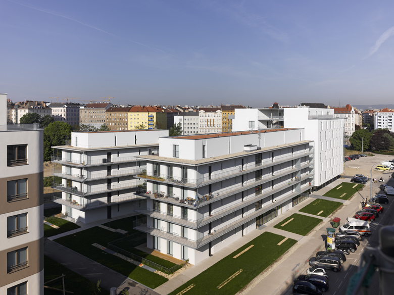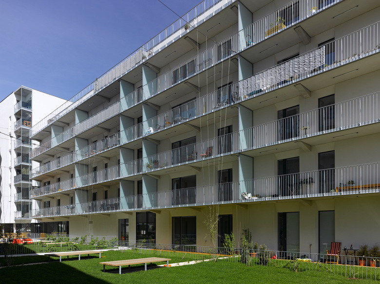 Les appartements sont équipés de baies vitrées et entourés de loggias qui permettent une relation directe avec l’extérieur. Les typologies de logement sont variées. Une attention particulière est portée à la valorisation de chaque logement, en particulier grâce à une combinaison qui permet une minimalisation des nuisances sonores. Les deux derniers étages sont composés de duplex.