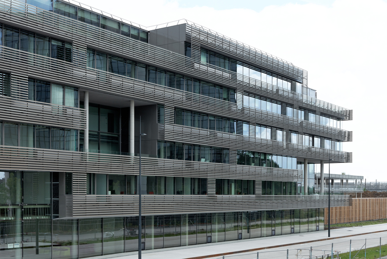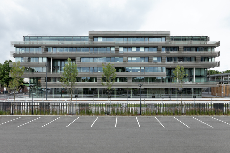 The offices are arranged around the atrium on five floors. Meeting rooms and open common areas animate the inner façade by providing bow windows into the court. There are large wooden terraces on each floor. These outdoor areas can be used for meetings, spontaneous and informal, as well as for moments of relaxation and rest.