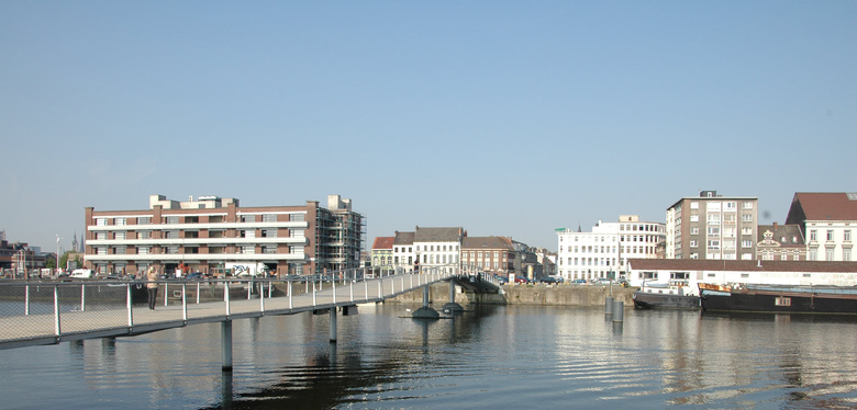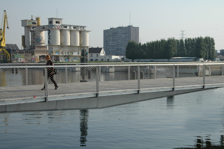 The ancient arsenal in the north of Gent lost its industrial glory and became abandoned over time. Situated close to the historic old town, the docks offer an ideal site to develop new urban life. According to studies about the accessibility of the docks the future three bridges and footbridges are very important to revitalize the new area. Since the docks are the only access by waterway to the old town, the pass through for boats has to be granted. DFA provided a cautious and elegant proposal for a footbridge. The industrial and maritime background of the area is reflected in the selection of materials, constituting steel with a wooden deck. With its simple form, resembling the extension of the quay wall, it seems to dock.