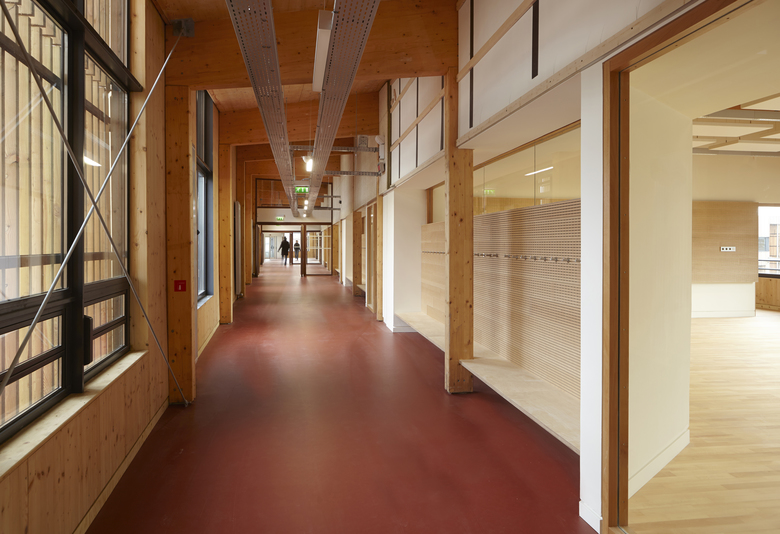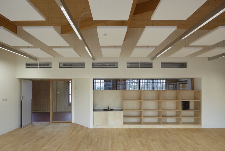Un accès indépendant de l’entrée principale de l’école permet l’usage du gymnase et de la bibliothèque en dehors des heures de l’école. La bibliothèque située à l’angle de la rue de Paris et la rue de Vienne est orientée vers le centre ville.