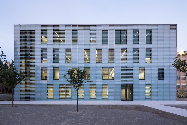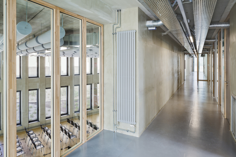 Consequently, Feichtinger opted for restraint, if not to say architectural neutrality. He prefers a space to a building, an empty volume to a full one, and a place to a piece of architecture. By breaking up the brief into a number of small buildings he allows an entrance to the campus to develop. Through the considered way in which he positions the buildings and the subtle expression of the facades he gives the place an identity. These are two important characteristics of this project which Feichtinger achieved by appropriating the characteristics of the campus and reinterpreting them. This proved to be a discrete way of integrating this small extension in one of Francess most important university complexes.