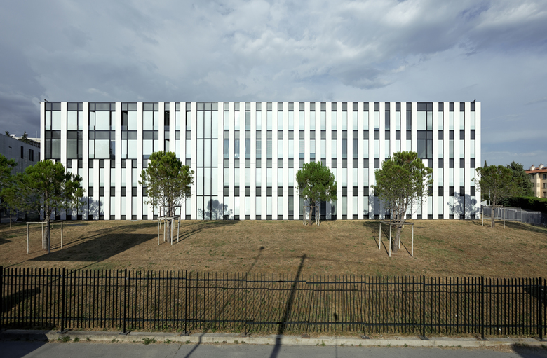 In approaching the project for the extension of the humanities faculty of Aix-en-Provence University Dietmar Feichtinger found himself confronted with a contradiction. On the one hand the extension, by nature of its position, had to mark an entrance to the campus, but on the other neither the brief nor the context suggested a specific form of architectural expression. The brief, relatively modest in terms of floor area (8000 m²) and banal in terms of content (lecture halls and offices), contained no elements such as an auditorium or large library that would have called for strong architectural expression. In addition the dreary mediocrity of the context spoke against a too striking kind of architecture. Given the featureless nature of the periphery of this provincial town with its groups of little houses and allotment gardens, banal workshops, pizzerias, and here and there a social housing block, even a minor architectural gesture would have seemed unsuitable, indeed even provocative.