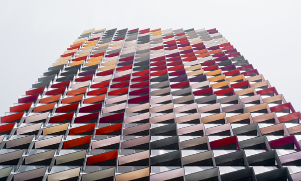 With 347 louvres in 16 different colours, you could be forgiven for thinking Elenberg Fraser was engaging with the local architectural context with their new building for Pan Urban, A’Beckett Tower. Au contraire, they are exploring the sensory effects of colour, rather than symbolic representation, by testing Goethe’s Theory of Colours. We are interested in how the body reacts and processes the blended and indistinct colour field, rather than what meaning the mind attaches to discrete coloured elements. Ironically, given the sunshades function to block heat from the building, the palette for the louvres was inspired by Australia’s, up until recently drought-stricken, landscape. Even while La Nina (over) nourishes our parched soil, the building is a reminder of our environmental history, and potentially future. Goethe’s theory asserts that colour is a phenomena that exists at the edge of light and dark - as you walk around A’Beckett, the black map of the sunshades opens up to the colour field, fading into light.