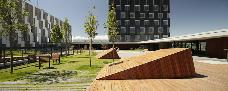 The project consists on the urbanisation of a new open space within the frame of an important redesigning process of the Services Centre of the Sabadell Bank. This space is determined by the new and the existing buildings. A large area of this project is placed on the deck of a new three floor building that constitutes the main level access to the complex.