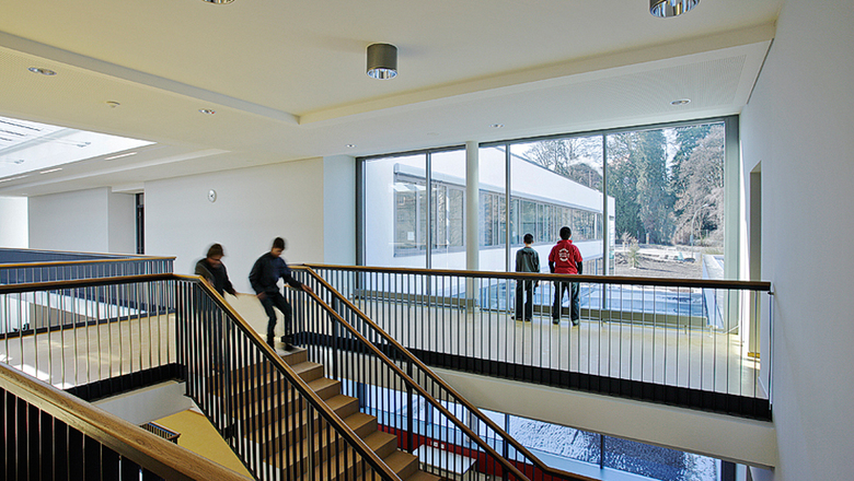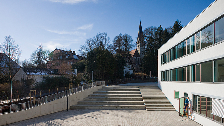 Der Landkreis Lindau (Bodensee) integrierte die seit vielen Jahrzehnten auf der Insel Lindau gelegene Realschule in das Schul–und Sportzentrum auf dem Festland. Hierfür wurde ein Generalübernehmerwettbewerb ausgelobt, bei dem nach einem qualifizierten Bewerbungsverfahren ausgewählte Teilnehmer eine Projektstudie und ein Pauschalpreisangebot unterbreiteten. Die Finanzierung verblieb beim Landkreis Lindau. Die Gremien des Auftraggebers entschieden sich im Dezember 2006 für unseren Entwurf. Im Verfahren wurden strenge Maßstäbe an Städtebau, Funktionalität und Wirtschaftlichkeit gelegt. Unter äußerstem Kostendruck wurde die Schule nach nur neun Monaten Bauzeit übergeben. Das Schulgebäude ist in eine großzügige, parkartige Umgebung eingebettet. Wie bei anderen Schulen konnten wir unseren Bauherrn gewinnen, in der Freianlage Solitärbäume zu pflanzen, unter anderem einen Mammutbaum (Sequoiadendron giganteum).