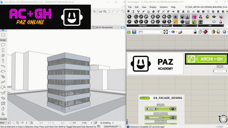 Machst du täglich Wettbewebe, Studien oder Vorprojekte? Willst du mehr Zeit mit deinem Design verbringen und wichtige Fragen entscheiden? Möchtest du in kurzer Zeit mehrere Designvarianten ausprobieren und gleich mit BIM verbinden? Willst du deinen Workflow dynamisch gestalten, deine Berechnungen in Echtzeit aktualisieren? Mehr über Datenmanagement erfahren und geometrische Zusammenhänge steuern und deine traditionelle Archicadkentnisse mit parametrischen Design erweitern?