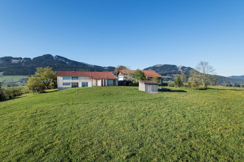 (…) Im Kern von 1616 stammt das heutige Erscheinungsbild aus der Zeit von 1846 und Anfang 20. Jh. Es zeigt das typische Bild eines geschindelten Hofes der Allgäuer Kulturlandschaft. (Die Bauherren) haben diesen historischen Hof 2016 bis 2018 durch ihre fachgerechte und auch architektonisch anspruchsvolle Sanierung vor dem drohenden Verfall gerettet und ihm eine nachhaltige Zukunft gegeben. Er vereinigt Ortsgeschichte und Moderne und kann Vorbild sein für Umnutzungen von Bauernhäusern.