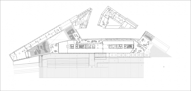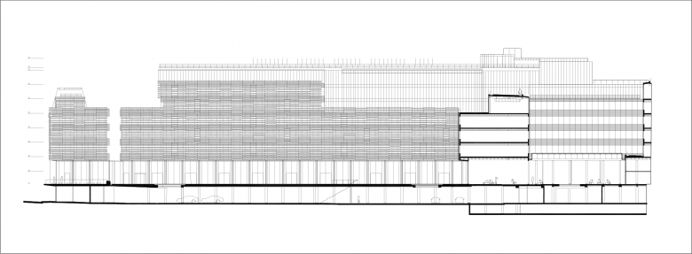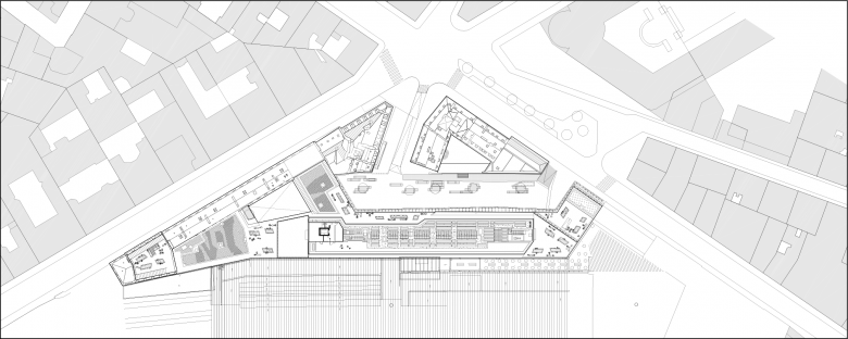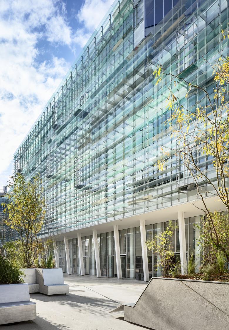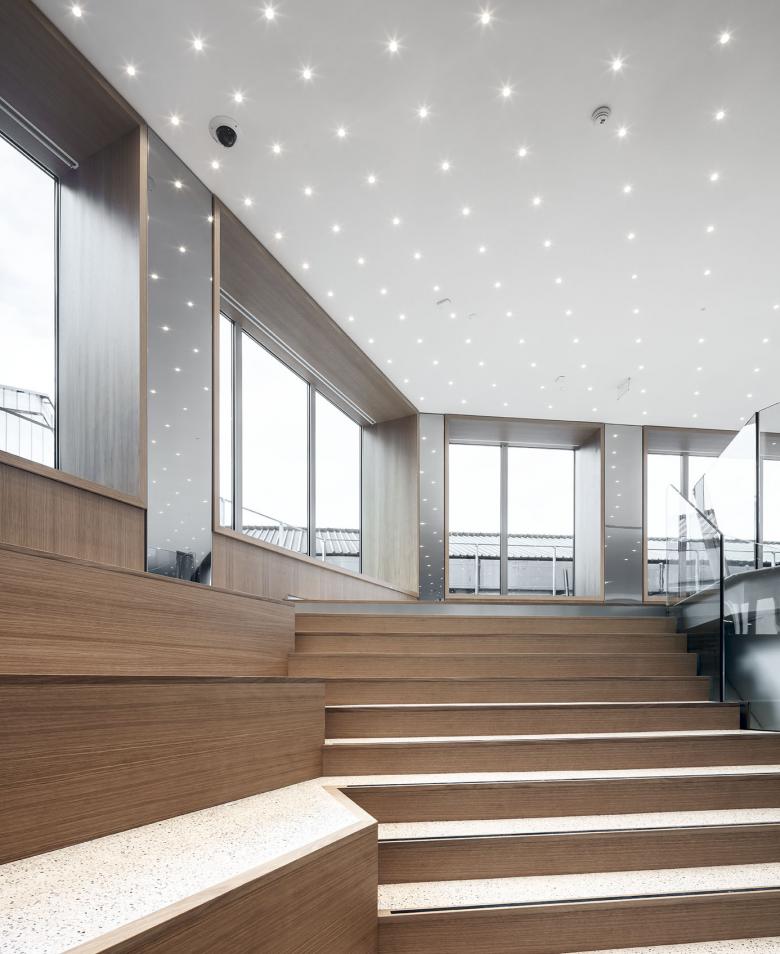 The building is organised around an auditorium overhung by hanging gardens, reimagining the district as a fertile urban landscape, and calm city retreat. Permeable forecourt and peristyle feature entrance lobbies open the building up at street level, and lead to the entrance hall, restaurants and shops within. Above ground floor, the commercial space is innovative and flexible, with a façade grid and ceiling frame structure allowing for multiple configurations. Straddling the entire building is a public promenade, 2,000m2 of terraces and a green roof that will be used for agricultural purposes, including environmental workshops and learning sessions for the building’s 2,000 occupants.