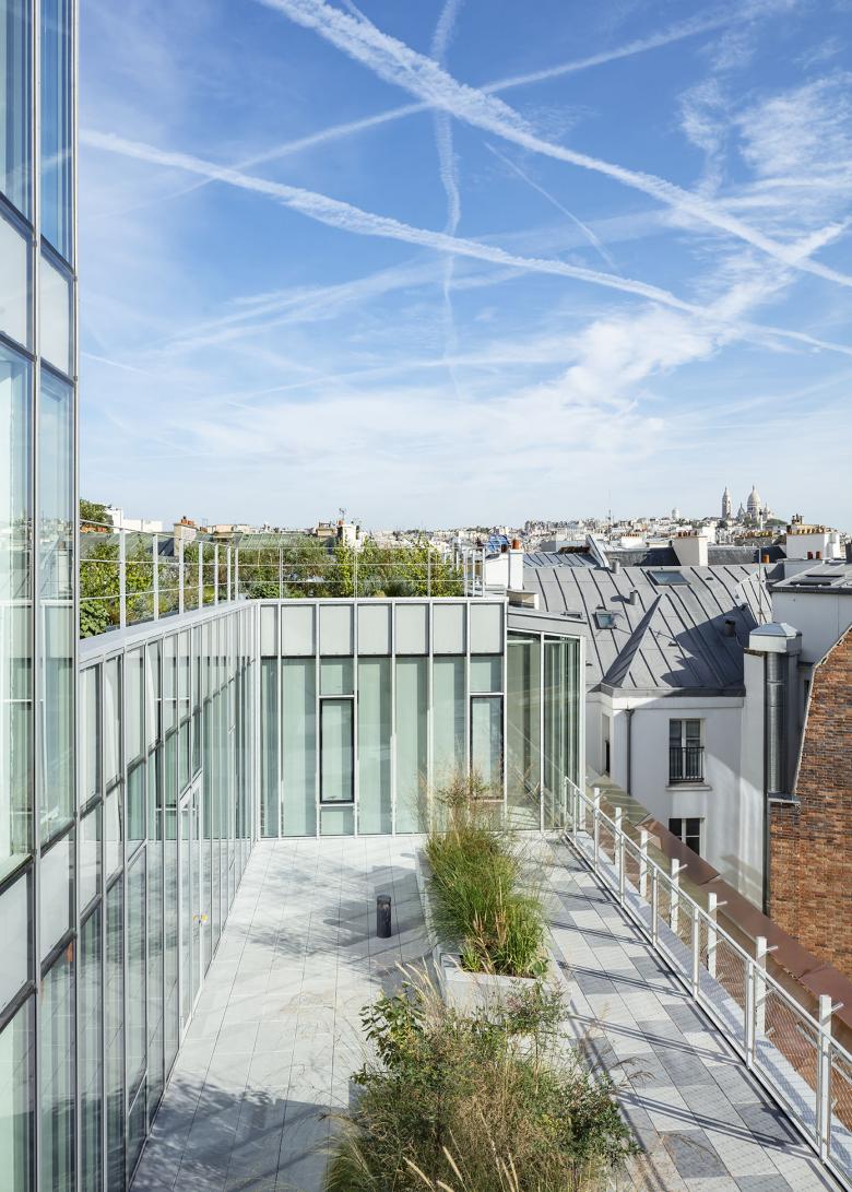 On the station side of the building, Grand Central’s façade reflects the historic glass roof of the adjacent French National Heritage site, sensitively shaping itself within the context of this iconic architecture. On the rue d’Amsterdam side, the elevations of softly coloured glass interweave with the building, and the original Haussmann architecture.