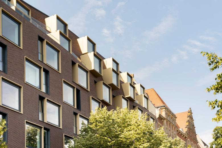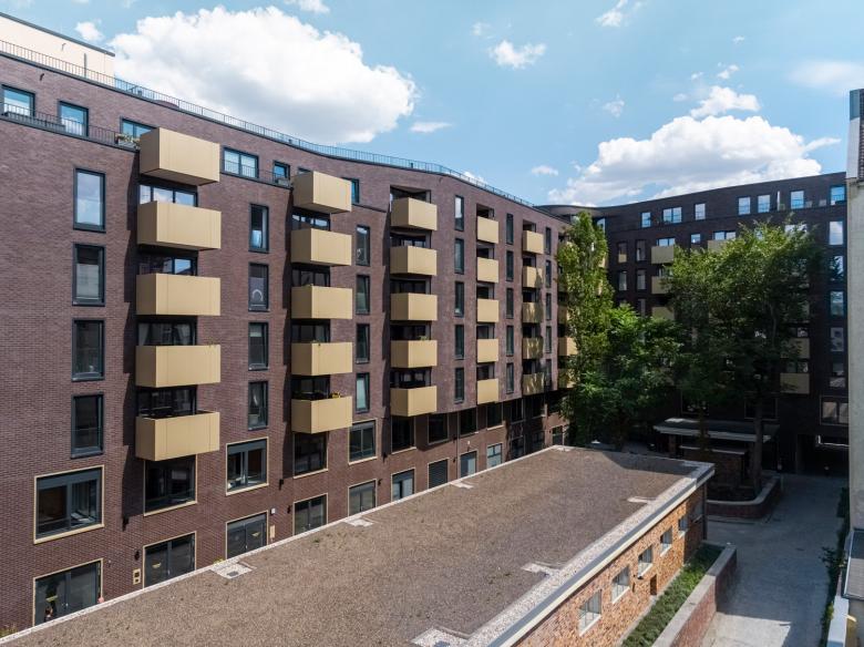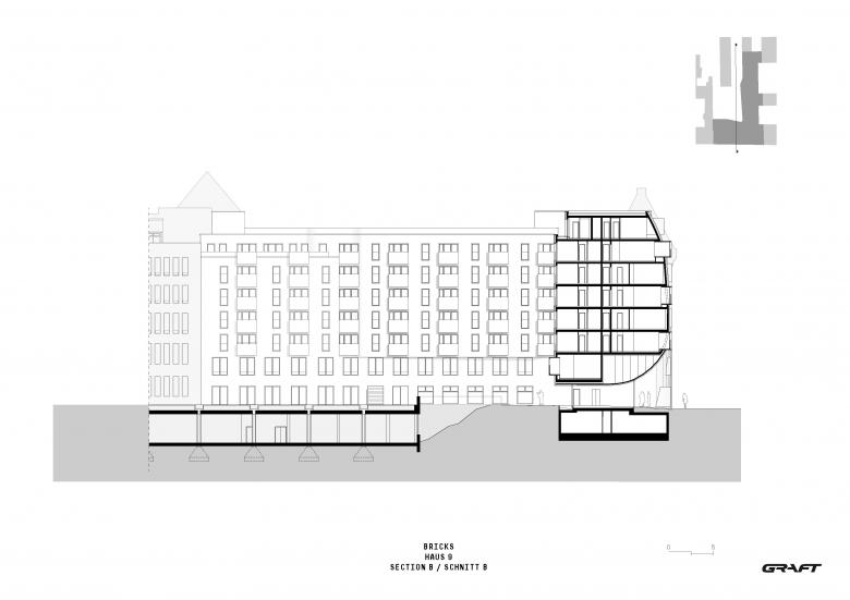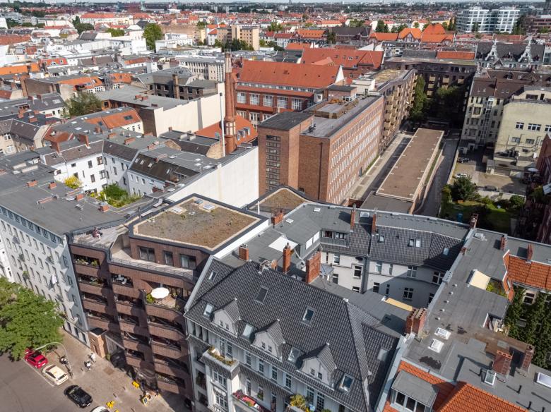 The roofs were fitted with additional windows, while the striking roof gables were kept to provide the interior with a homey atmosphere. All commercial units are barrier-free. The interventions in the structure of the historically protected rooftops serve to preserve the building, and its ongoing utilization contributes to the identity of the Berlin district. The new buildings were also equipped with brick facades in order to blend into the historical ensemble, whilst adopting and expanding on the tradition of the historically protected structures. In the style of historical courtyard passages, the building was given a spacious access from the Hauptstrasse into the internal courtyard. By means of cutting-edge technology, brickwork and geometry, historical monument and the parametric design strategies of the 21st century were artfully combined.