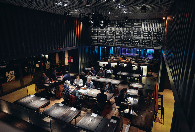 By setting four containers in length and stacking three containers onto each other, the cube forms a space of about 600 m² and offers enough space for the brewery equipment, as well as room for guests, events, and administration.
