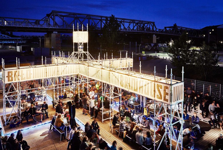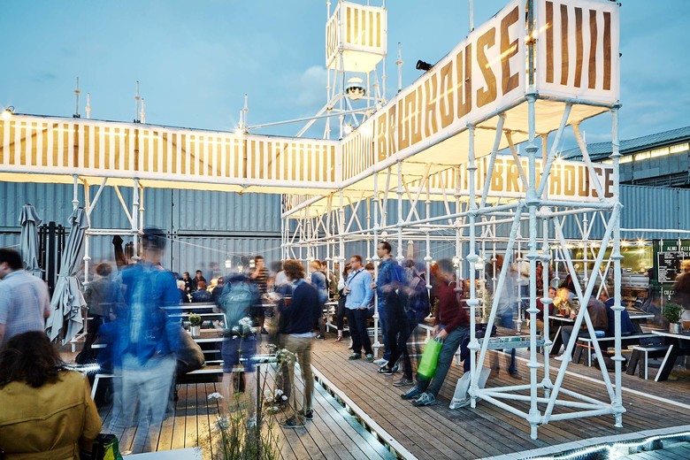 In Berlin, on the site of “Urbane Mitte” between eastern and western part of Gleisdreieck Park, a mobile brewery and beer garden designed by GRAFT has been erected in summer 2016. The building volume of BRLO BRWHOUSE combines gastronomy, events, administration and the art of brewery and is remarkable for its container architecture in modular design.