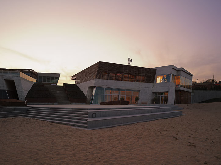 The materiality of the buildings is emphasizing this intention, natural bleached wood equals driftwood on the shore, and surface-treated concrete, composed with local sand and aggregates will match the color and texture of the existing rocks and sand. The main feature of the Beach Front is a large scale Boardwalk. A wooden Deck, which serves as a public stage along the half moon-shaped beach. The wooden boardwalk provides a natural transition to the beach, being partly on the same elevation, so natural sand dunes will blur the circular shaped edge.