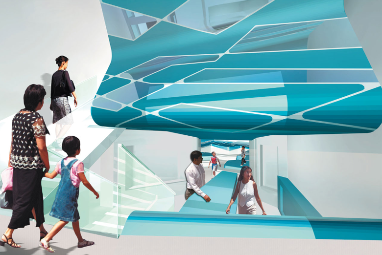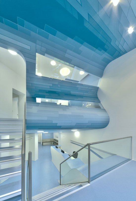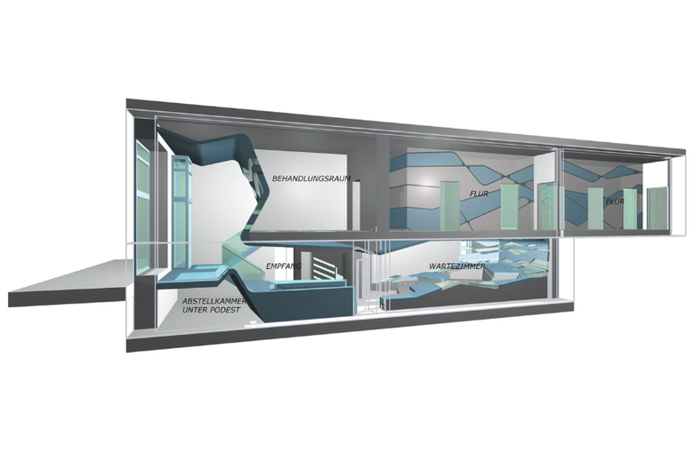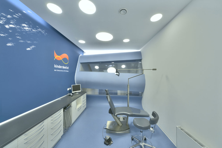 Die Architektur von Arztpraxen spricht häufig dieselbe Sprache: es ist eine Ästhetik der Hygiene und Sterilität. Unterstützt durch den klassisch weißen Farbmonolog und den spezifischen Geruch von Arztpraxen, löst der Besuch besonders beim Zahnarzt meist schon beim Betreten ein Unwohlbefinden aus. Insbesondere bei Kindern wird der Besuch beim Zahnarzt oft von Angst begleitet. Auf diesem Wissen aufbauend, wurde von Graft für die Kinderzahnarztpraxis von Dr. Mokabberi ein neuer Typ von Praxis entwickelt, der speziell auf Kinder zugeschnitten wurde. Als Vorbild hierfür diente das Bild einer Unterwasserwelt, in die man abtauchen und entdecken kann und die einen dabei die Welt um sich herum, und insbesondere den Besuch beim Zahnarzt, vergessen lässt.