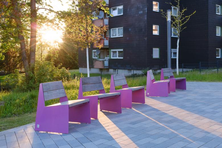 Zur Stärkung der Identität und Sichtbarkeit entwarf unser Team ein individuelles, auf die lokalen Gegebenheiten angepasstes Möblierungskonzept für Bernberg. Es besteht aus wiedererkennbaren Elementen, die sich harmonisch in den Stadtteil einfügen und nach Bedarf erweiterbar sind. Zusätzlich beinhaltet das Möblierungskonzept ein eigenes Leitsystem für Bernberg sowie für die umliegenden Wanderwege.