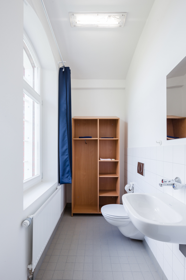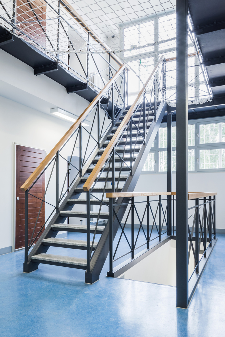 Hierbei handelte es sich um eine Kernsanierung, wobei neben den baulichen Veränderungen wie z.B. die Abtrennung neuer Stationen, die Vergrößerung der Hafträume und der Herstellung des baulichen Brandschutzes auch die gesamte TGA erneuert werden. Ein weiterer Schwerpunkt war die Sanierung der vorhandenen Bausubstanz von Dach, Decken, Treppenanlagen und der Giebelfenster an der West- und Ostfassade.