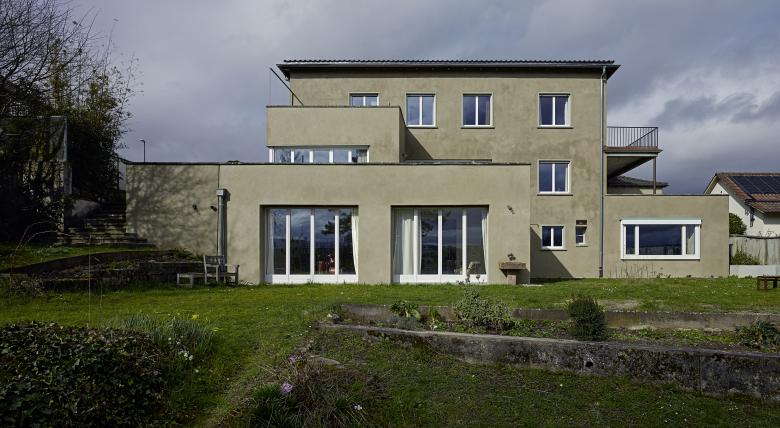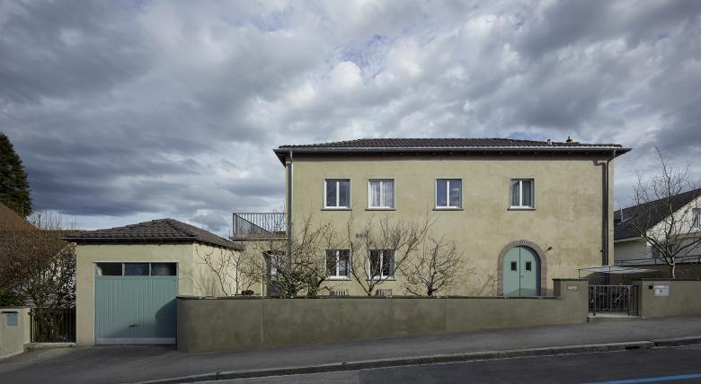 Gesamtsanierung der Aussenhülle. Neuer Putzaufbau mit Aerogeldämmung und pigmentiertem Kalkputz mit maximalem Glimmeranteil. Erneuerung der Bedachung mit Unterdach aus Holzfaserdämmplatten und Eindeckung mit Pfannenziegel. Dachterrassen mit Aerogelvlies und neuer Nutzschicht mit Saibrobelag. Ersatz der Heizungsanlage. Äussere Malerarbeiten.
