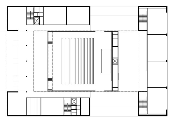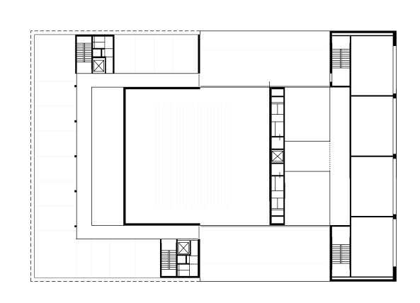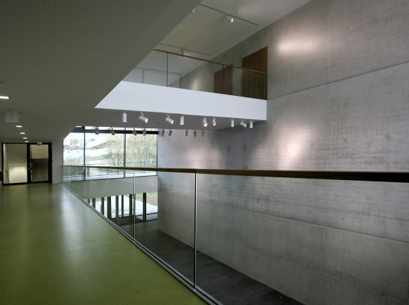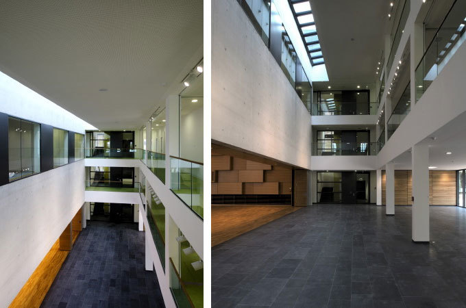 Das neue Hochschulgebäude definiert einen markenaten Eckpunkt an der Kreuzung der internen Universitätesachse mit dem Grünbereich zwischen Universität und Fachhochschule. Es ist so platziert und organisiert, dass die Nord-Süd-Achse zur Stadt - mit dem Durchblick durch das Gebäude und die ttransparente Halle - freigehalten und thematisiert wird.