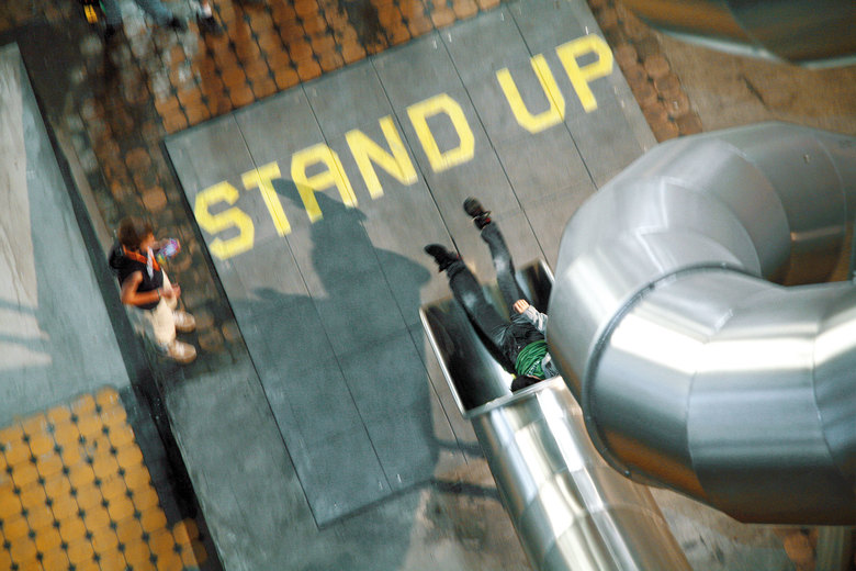 Zehn große Bilder erzählen von dem, was wir täglich brauchen und verbrauchen: Relax! Survive! Choose! Protect! Love! Belong! Create! Understand! Dream! Stand Up! Zahlreiche zeitgenössische Künstler entwickelten zum Teil speziell für die Ausstellung Arbeiten zum Thema. Mit spektakulären Installationen wie einer 25 Meter hohen Rakete, einem Meer aus 44'000 Wasserflaschen oder Statistiken mit Reiskörnern werden die Besucher zur Reflexion über menschliche Bedürfnisse, Ressourcen und Fairness angeregt.