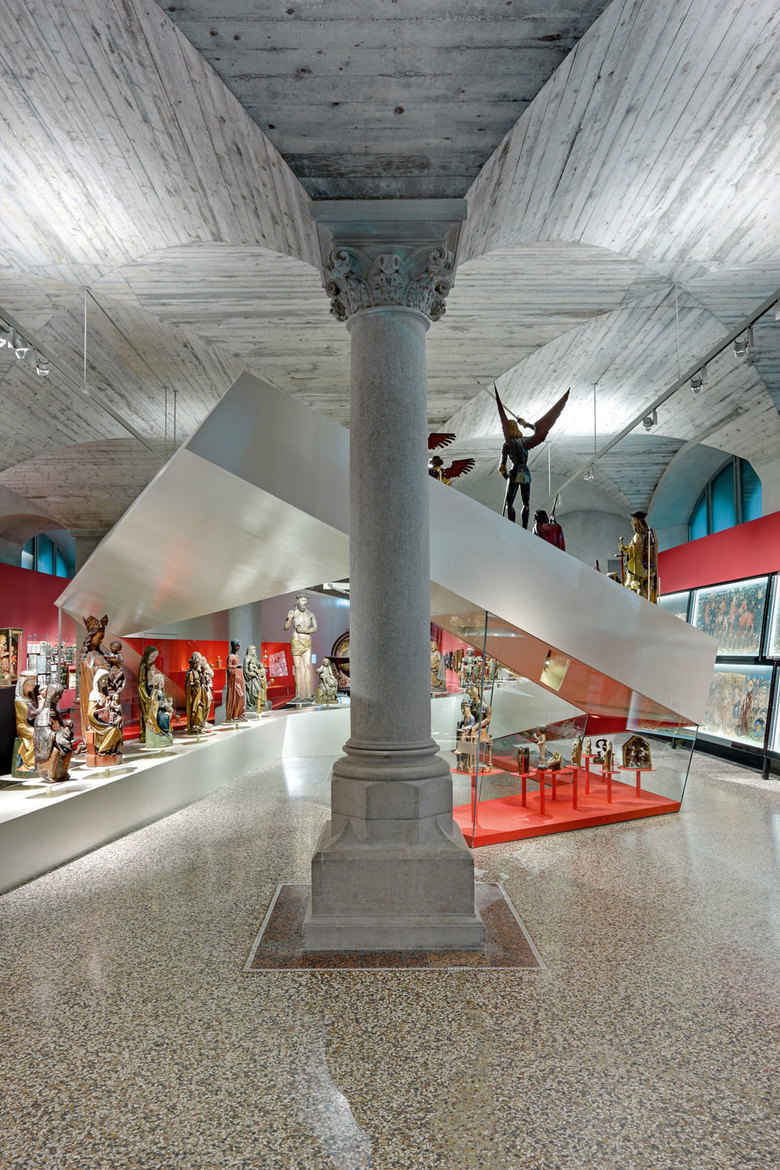 Der Entwurf der Ausstellungen reagiert auf die Eigenheit des Gebäudes. Der strengen, symmetrischen Architektur werden leichte, ephemere Ausstellungskörper entgegengesetzt, die sich klar von der historisierenden Architektur absetzen. Sie ermöglichen dem Besucher, die altbekannten Räumlichkeiten aus ungewohnten Perspektiven zu entdecken.