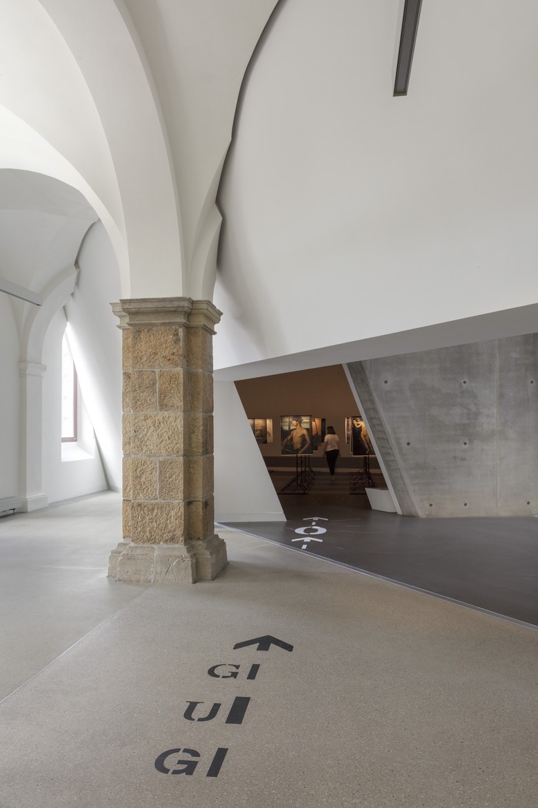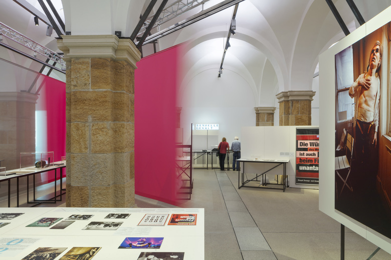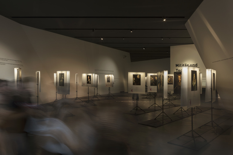 Der Hauptakt umfasst verschiedene Themenfelder, die sich auf den historischen Ausstellungsraum des Museums und die Industriehalle in einem Nebengebäude verteilen. Grossformatige, mehrstufig transluzente, bewegliche Raumteiler choreografieren den Weg durch den ersten Raum „Macht und Militär“ und den Blick auf die Exponate, die dieser zeigt. Inhaltliche Zusammenhänge werden so dynamisch hergestellt, Themen-Cluster werden gebildet und wieder getrennt, Kontexte wandeln sich stetig. Die Exponate stehen hier in einer assoziativen Beziehung zum titelgebenden Thema und ebenso zueinander; die Bewegung der Raumteiler hilft Querverbindungen zu schaffen – von Moment zu Moment, je nach Standpunkt für jede Besucherin und jeden Besucher individuell. Die besondere räumliche Situation einer ehemaligen Industriehalle prägt den zweiten Ausstellungsraum. Hier bilden die beweglichen Raumteiler kontinuierlich verschiedene Räume, um sie anschliessend wieder aufzulösen. Objekte und Themen sind im zweiten Teil der Ausstellung stärker strukturiert, das zuvor Gesehene wird nochmals theoretisch unterlegt. Die sich öffnenden Denkräume und die vielfältigen Denkanstösse ermöglicht eine echte Auseinandersetzung.