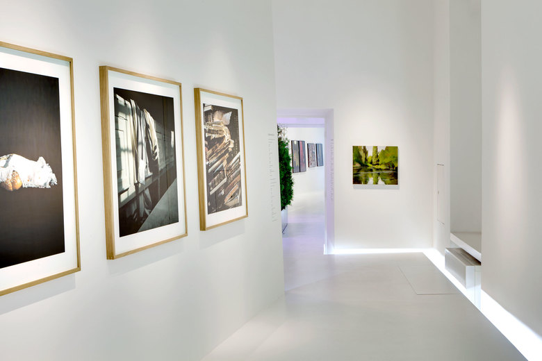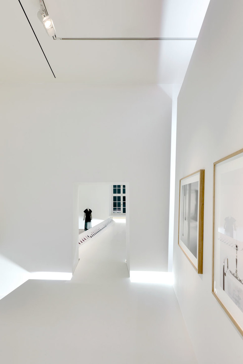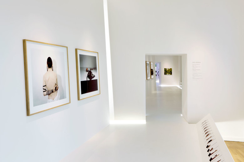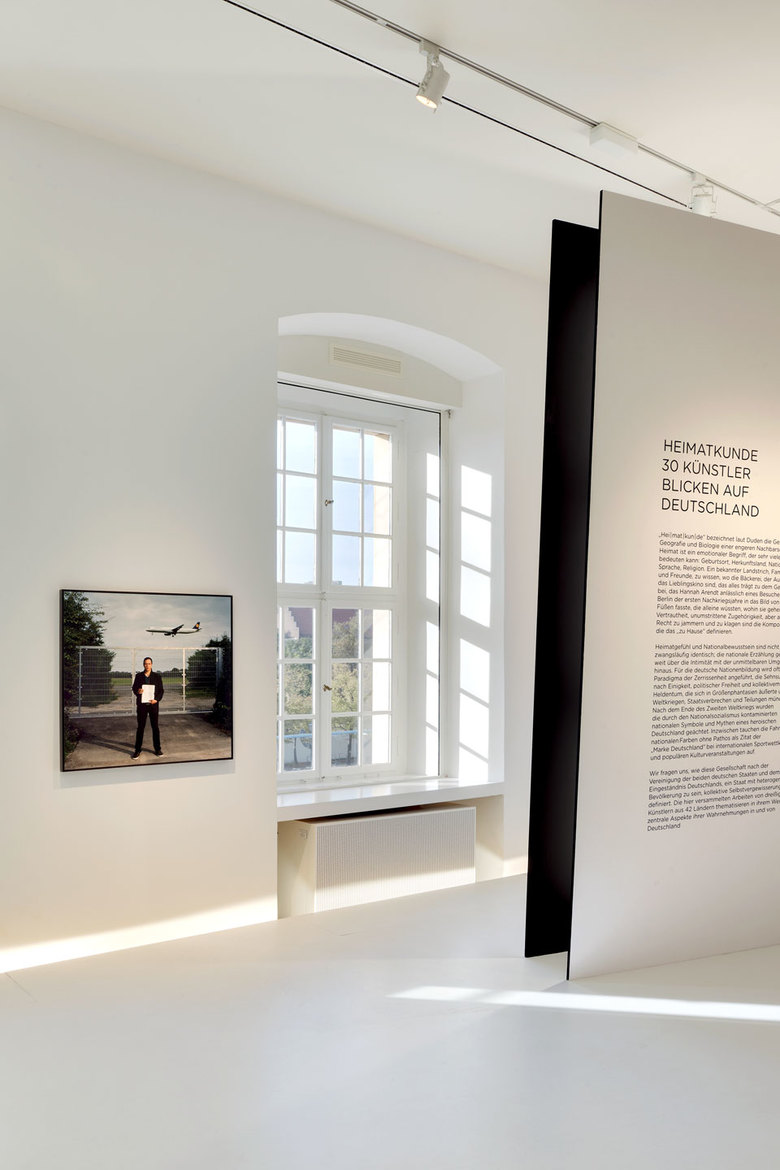 Die Ausstellungsgestaltung greift die ambivalenten kulturellen Bezüge auf, mit denen sich die gezeigten Künstler auseinandersetzen. In den eleganten barocken Altbau aus dem 18. Jh. ist ein White Cube eingeschrieben, der eine partielle Verdoppelung der aneinandergereihten Ausstellungsräume darstellt. Durch leichtes Kippen und Drehen des implantierten Raumkörpers entsteht eine Überlagerung von Alt und Neu. Die dadurch leicht an- und absteigenden Böden sowie die schiefen Wände führen zu einer räumlichen Irritation der Besucher. Das gewohnte horizontale und vertikale Bezugssystem ist gestört. Hier lehnt sich die Ausstellungsarchitektur an den von Daniel Libeskind entworfenen Neubau des Museums an: Die Besucher öffnen ihre Sinne und nehmen Raum und Kunst intensiv wahr.