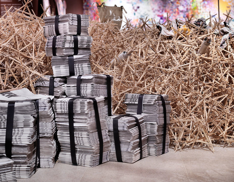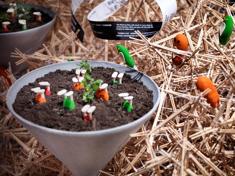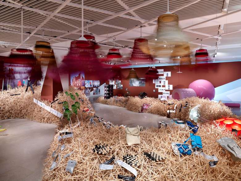 Die Gestaltung der Ausstellung führt die einzelnen Werkbeiträge räumlich zusammen: ein Drache aus fast 200 000 Essstäbchen durchzieht den Ausstellungsraum. In dieser Installation befinden sich die unterschiedlichen Designobjekte – und ermöglichen so den Blick in die Zukunft des Designs.