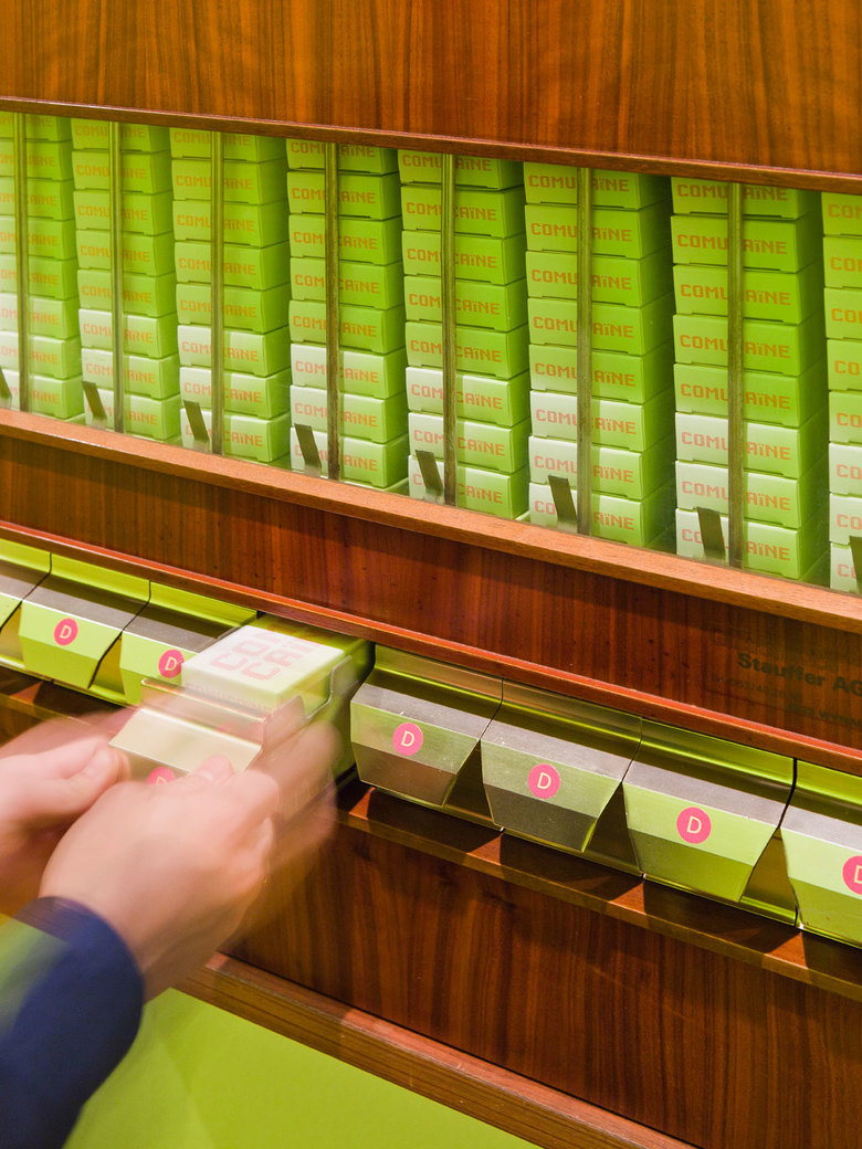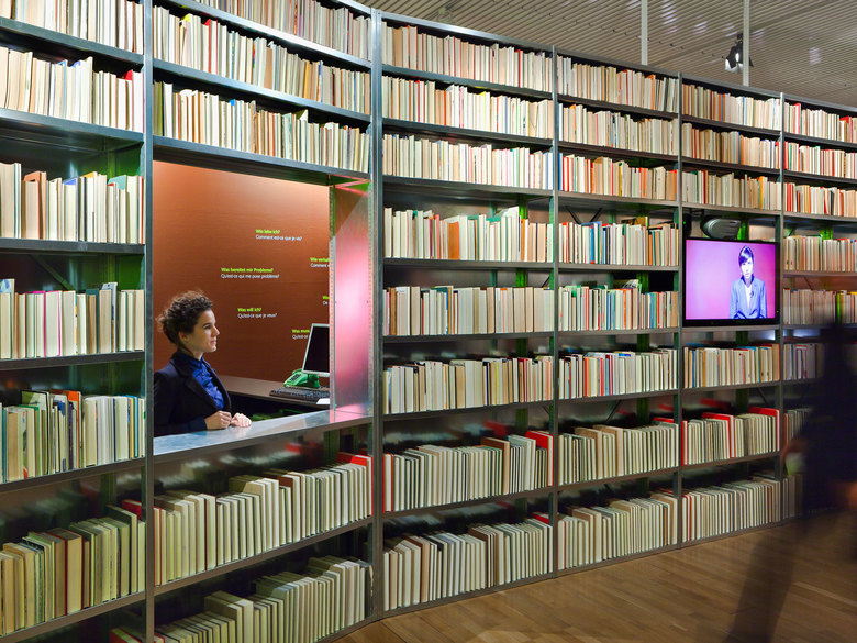 Warnung: Kommunizieren gefährdet versteht sich als Lebenshilfe. Der Besucher betritt die Klinik für Kommunikation durch einen von Büchern gesäumten Gang und wird sogleich in das Dickicht der Information aufgesogen. In einem seriösen und zurückhaltend gehaltenen Raum kann er sich einem Check-Up unterziehen und seinen Persönlichen Kommunikationsindex berechnen lassen. In der vertauensvollen und diskreten Umgebung des Warteraums lässt sich gelassen dem Ergebnis entgegenblicken, einem von vier möglichen Persönlichen Kommunikationindizes. Welche der vier Wellness-Packages wird ihm verordnet und als Sofortmassnahme durchgeführt werden? Hinter einer der vier bunten Türen wird die individuelle Behandlung vonstatten gehen. Sie werden mit dem Medikament «Comucaïne» aus der Klinik entlassen. Auf der Packungsbeilage sind die wichtigsten Tipps zusammengefasst.