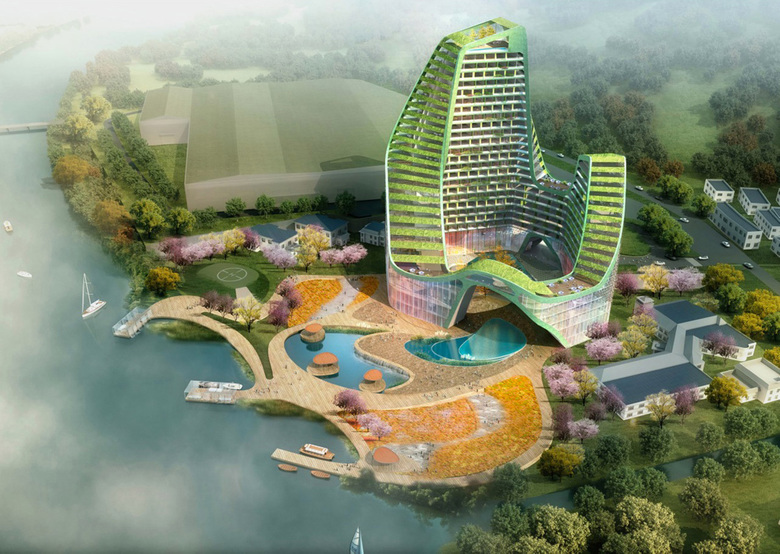 Der Entwurf für das Zhong Fang Blue Globe Hotel in der Stadt Jiande in der chinesischen Region Hangzhou lehnt sich an den Naturbegriff des Philosophen Laozi an – „Ziran“ bedeutet: spontan, natürlich, ungezwungen und sich selbst zu sein.