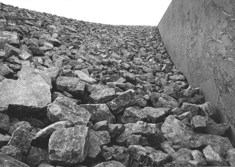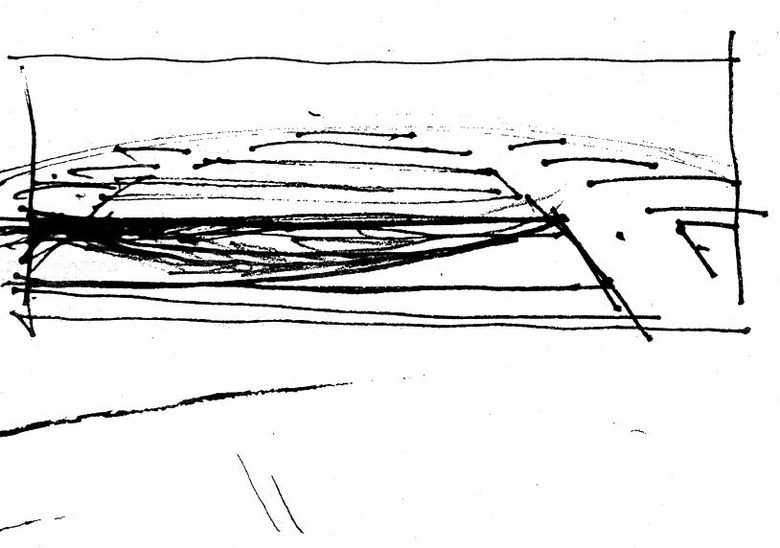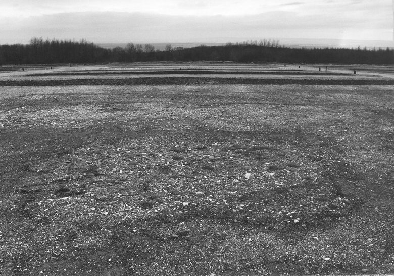 Unsere Idee besteht darin, innerhalb der Struktur gleichsam durch einen Schnitt Verborgenes bloßzulegen, um dadurch den Ort und seine Topographie selbst zum Thema zu machen. Das Eindringliche und Unentrinnbare der Gestalt des Ortes besteht in der Struktur der Gebäudegrundnisse auf dem nackten, exponierten Hügel. Jede Vertikale Betonung eines einzelnen Elementes würde diesen Charakter des gesamten Ortes zugunsten einer Stelle schmälern. Die markierte Grundfläche des Blockes 22, der “Judenbaracke”, wird ausgegraben und in Form einer weichen Absenkung mit Steinen aufgefüllt. Die Steine stammen vom nahen Steinbruch, in dem vor allem die jüdischen Gefangenen Zwangsarbeiten verrichten mussten. Die Absenkung kontrastiert die Hügelform und legt eine Wand frei, in die längliche Holzstücke aus Ölbaum eingegossen sind. Es könnten die Namenzüge der über 10.000 jüdischen Opfer sein. “Gräber werden ausgehoben. Ihr Wesen ist intentional. Wer gräbt will Verschüttetes freilegen. Das kann ein Gegenstand sein oder die Zeit selbst.”