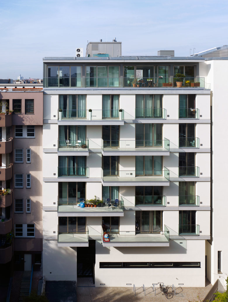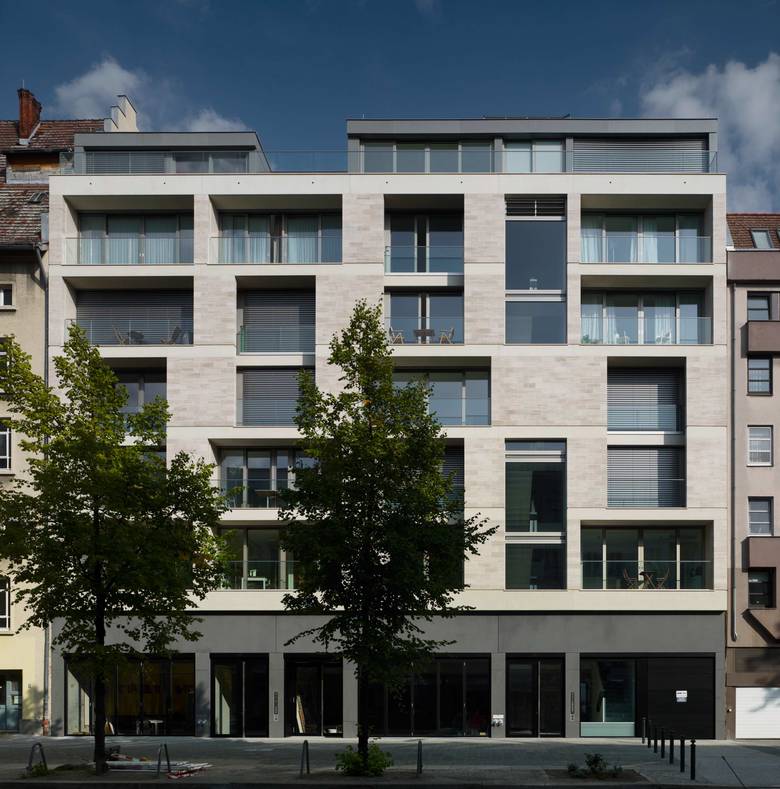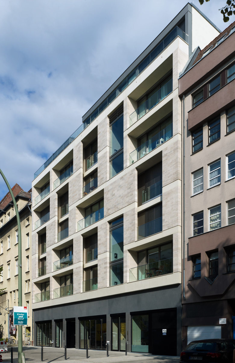 Die Knesebeckstraße stellt eine Querverbindung zwischen den Hauptverkehrsadern Kurfürstendamm, Kantstraße und Hardenbergstraße her. Das Haus Nr. 99, ein achtgeschossiger Neubau, schließt auf dreieckigem Grundriss eine Baulücke zwischen Renaissance Theater und angrenzender Wohnbebauung. Planerisch als Kerngebiet ausgewiesen, ist das Grundstück ein Bindeglied zum gemächlicheren Teil des angrenzenden Wohnviertels. Das Konzept sah eine Mischung aus verschiedenen Wohnungstypen mittlerer Größe vor, außerdem Gewerbenutzung im Erdgeschoss und eine Tiefgarage. Die Konstruktion des Gebäudes ist auf einem einheitlichen Achsabstand aufgebaut. Die Fügung der sieben unterschiedlichen Wohnungstypen innerhalb der möglichen und stadtplanerisch vorgegebenen Ausdehnung der Gebäudehülle erfolgt durch additive und vor allem komplementäre Ergänzungen der verschieden großen Volumen (Stacked Villas). Geschosswohnungen wechseln mit Maisonette-Wohnungen und Apartments. Damit wird die Wahl des Wohnungstyps innerhalb des Hauses zu einem Akt der individuellen Aneignung seitens der Bewohner. Die Wohnbereiche sind durch Zwischenwände funktional gegliedert und durch raumhohe, große Schiebetüren entlang der Fassaden miteinander verbunden. Diese räumliche Gliederung eröffnet die Möglichkeit einer flexiblen Belegung der Räume und die verknüpfte Wegführung ist offen für die jeweiligen Gewohnheiten der Bewohner. Jede Wohnung hat ruhige Zimmer und Balkone zum Hof.