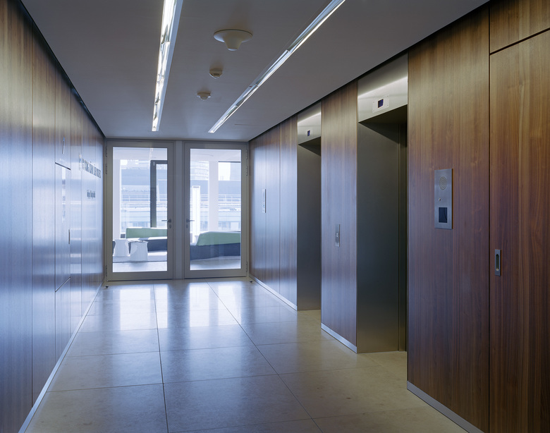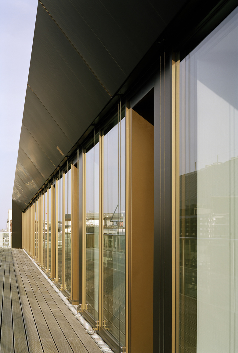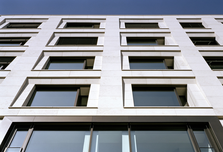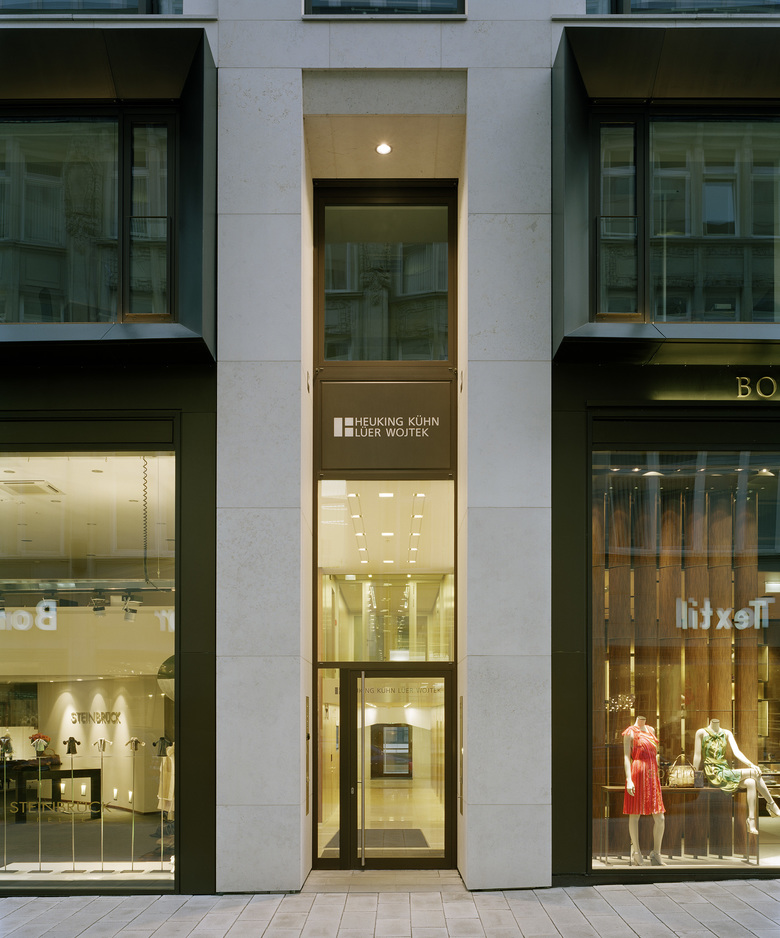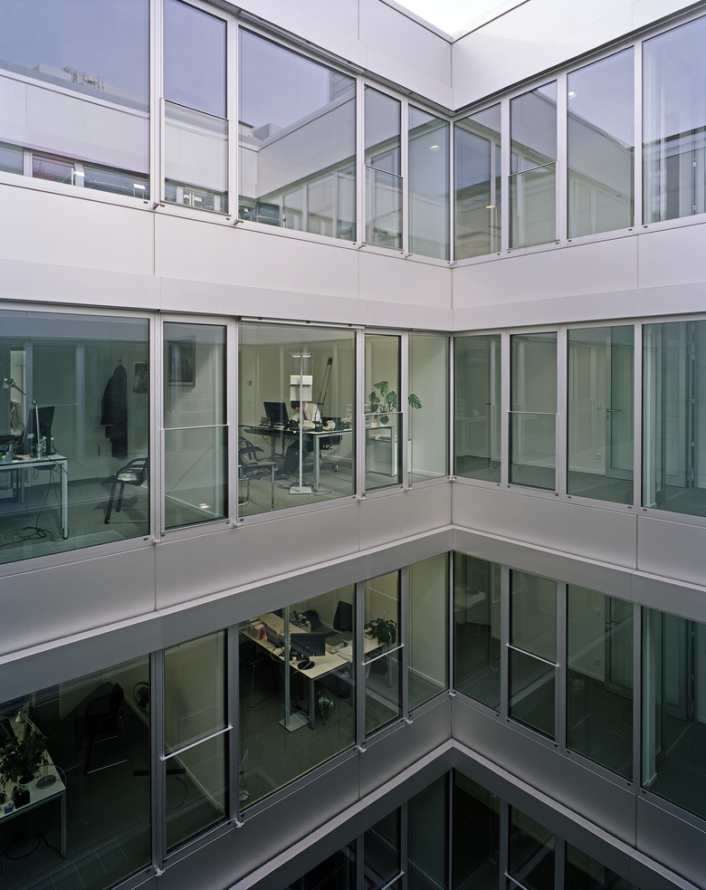 Die mit einem Neubau vergleichbare Revitalisierung des Gebäudes aus den 80er Jahren besteht aus einem Neubau der Fassade und einem Neuaufbau von 5 Obergeschossen bei Erhalt des Bestandskerns. Das 8-geschossige Gebäude mit 3 Läden und großzügiger Lobby im Erdgeschoss erstreckt sich vom Neuen Wall bis zum Alsterwanderweg am Alsterfleet. Das Gebäude erhält eine neue formale Ausprägung und wird, seinem Umfeld entsprechend, geprägt von einem klassischen Fassadenaufbau mit Sockelzone und Mezzaningeschoss, einem Mittelteil mit einer fein profilierten Lochfassade und einem Dachabschluss in Form eines gerahmten und voll verglasten Staffelgeschosses. Die Bürogeschosse mit bis zu vier Mieteinheiten pro Geschoss werden zusätzlich über zwei neue, ebenfalls voll verglaste Innenhöfe belichtet. Die Fensteröffnungen der steinernen Lochfassade erhalten ein rahmenhaftes Relief von leicht schrägen, gefalteten Naturstein-Flächen und sind in der Verglasung zweigeteilt. Das große Panoramafenster bildet jeweils eine Festverglasung, während der schlanke, vertikale Lüftungsflügel deutlich zurückspringt. Auf diese Weise erhält die Fassade ein spannendes Schattenspiel und einen besonderen Fokus auf die großzügigen Panoramafester. Am Neuen Wall wird das heutige 2. Obergeschoss als Mezzaningeschoss ausgebildet und erhält vier auskragende Erker über dem Gehweg. Zusammen mit den großzügigen Schaufenstern der Ladenfassade wird damit eine Art Sockelzone ausgebildet, die mit dem Bestand der Nachbarn eine horizontale Entsprechung erfährt. Die Materialität der Fassaden wird geprägt von einem hellbeigen, gestrahlten Jura-Naturstein in großen Formaten und Rahmenelementen aus goldbraunem eloxiertem Aluminium.